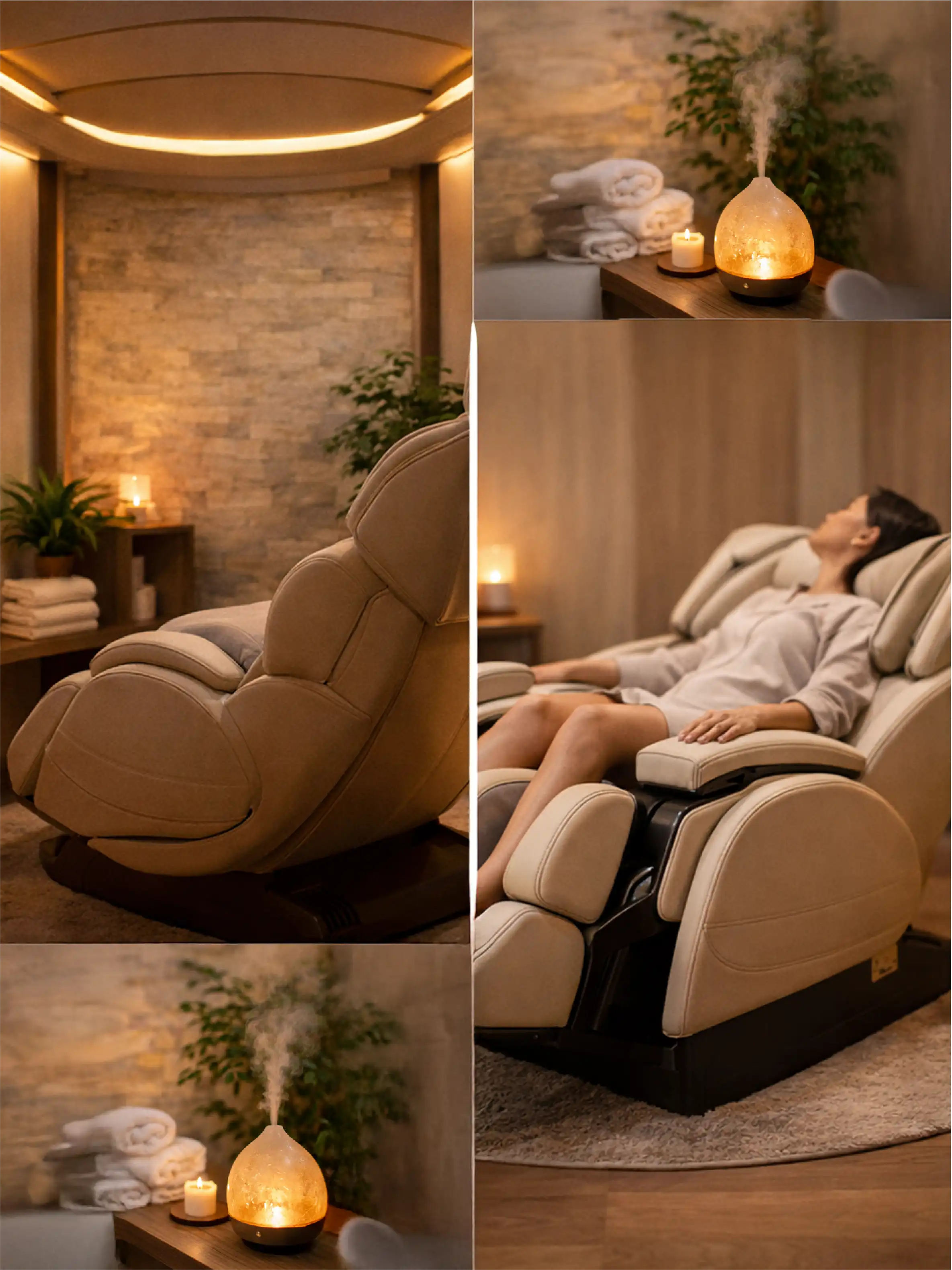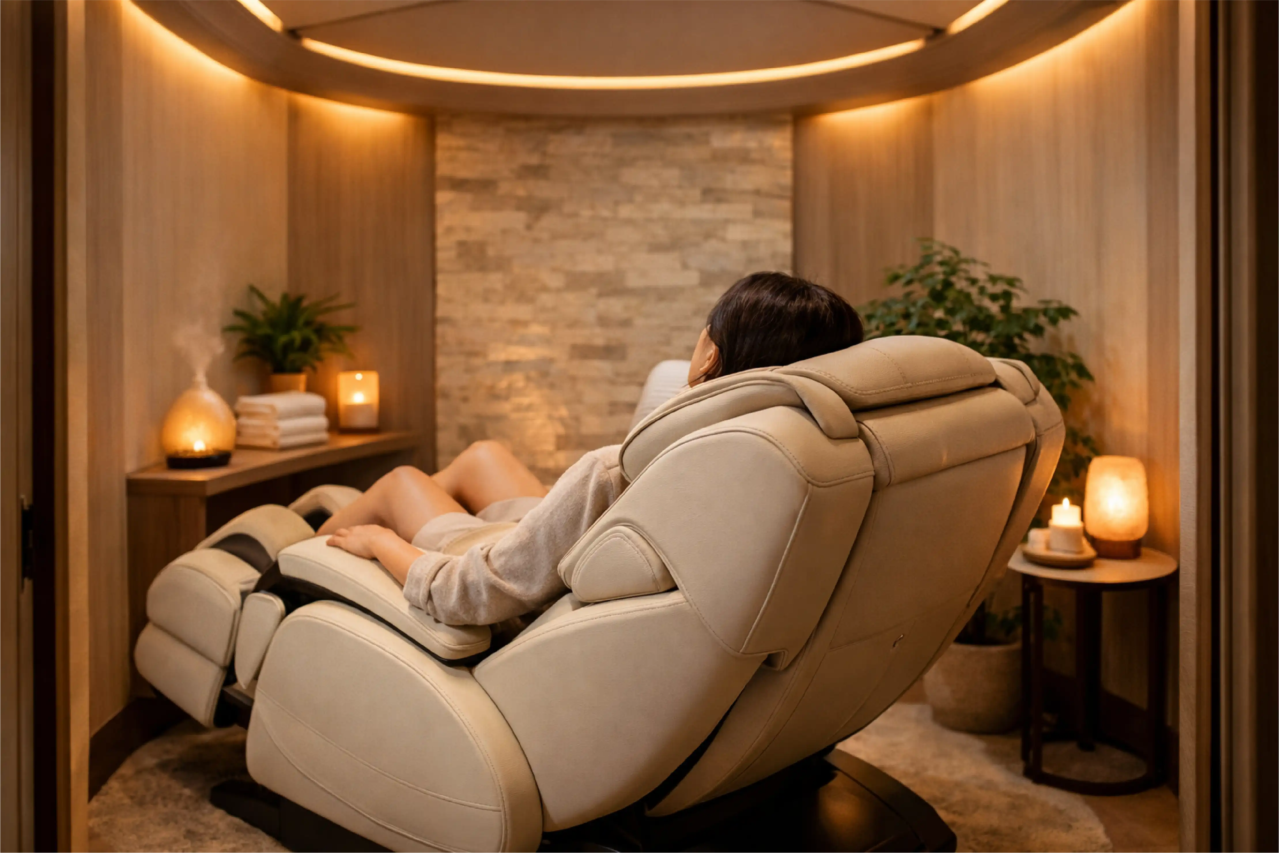 Enter your private suite and take your seat. Use the intuitive tablet interface to select your massage style, adjust the warm ambient lighting, and choose your aromatherapy scent.